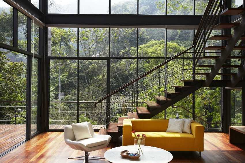 Молодой паре без детей подойдет стиль лофт. Нарочитая грубость интерьера с выступающими коммуникациями и лестницей с парящими ступенями опасна для малышей. Динамичный, яркий дизайн понравится творческим людям, которые устали от стандартных понятий о домашнем уюте.