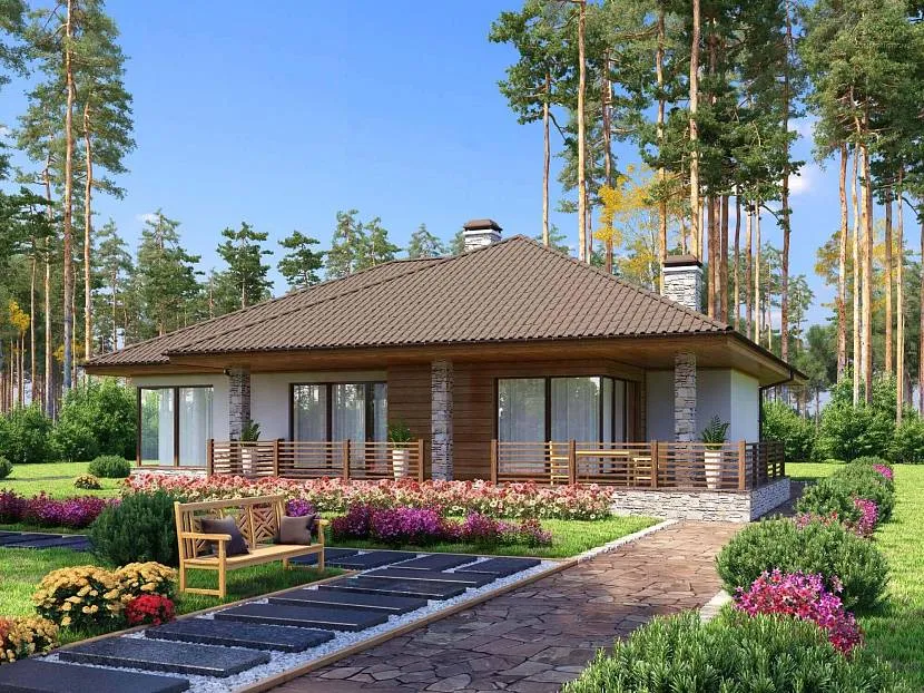 Чтобы возвести дом в один этаж, не следует использовать специальную технику. Поэтому если на территории уже организован какой-то ландшафтный дизайн, его всегда есть возможность сохранить.