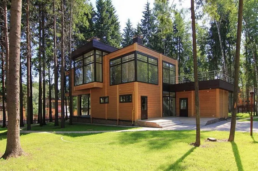 Дом в стиле хай-тек с отделкой из дерева