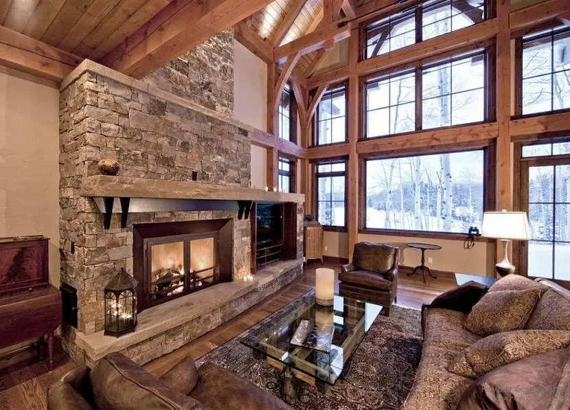 Именно камин обеспечивает атмосферу тепла, уюта, душевного спокойствия. Поэтому к выбору его дизайна нужно отнестись очень внимательно, иначе нарушается общая стилистика стиля шале, его неповторимая аура.
