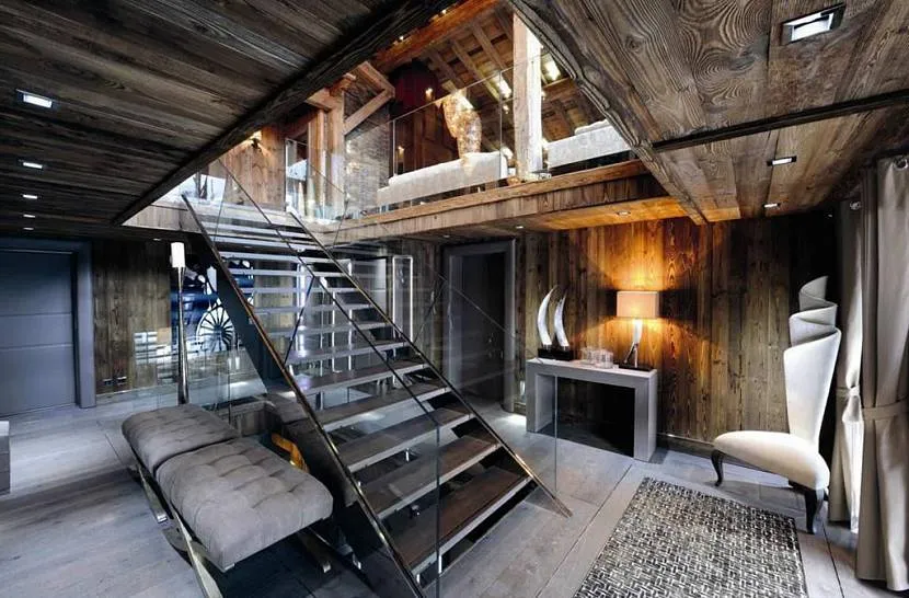 Крупные потолочные балки самая узнаваемая деталь стиля шале