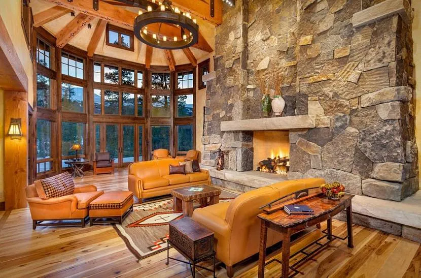 Уютная комбинация стилей шале и кантри в оформлении гостинойИсточник paydaydcr.com