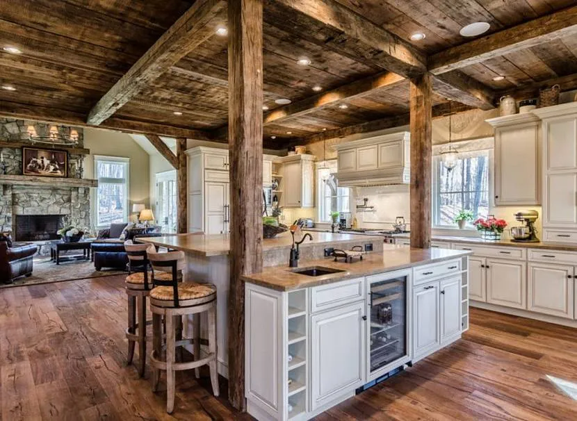 9. Потолочные балки с сохраненной древесной структурой и цветом.