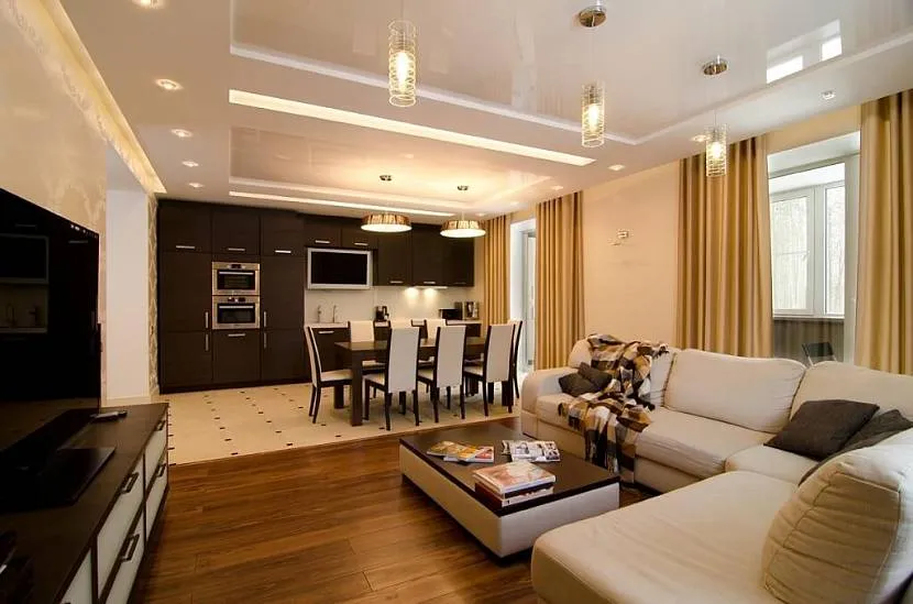 Комната, в которой достаточно часто собираются гости и где в принципе проводятся все семейные торжества – привычное явление, и она должна в итоге получиться не только комфортной, но также и презентабельной, поскольку служит настоящей визитной карточкой всей квартиры.