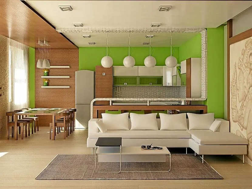 - Зонирование помещения. Кухня – место для приготовления, приема пищи, гостиная – для отдыха.