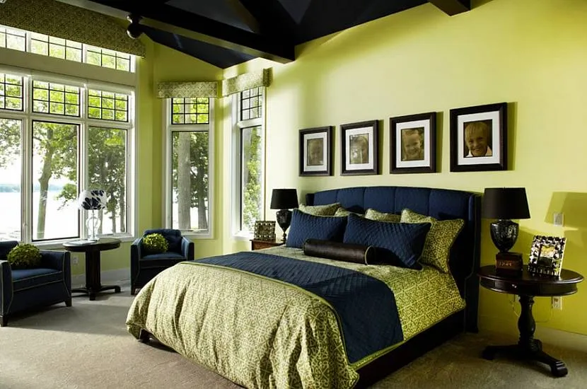 Светлые оттенки (фисташка, ваниль, пудра). Данная комбинация особенно нравится молодым девушкам, так как она смотрится нежно и романтично. Спальня в сине-бежевых тонах выглядит спокойно и по-домашнему уютно. А желто-синяя комбинация зарядит оптимизмом.