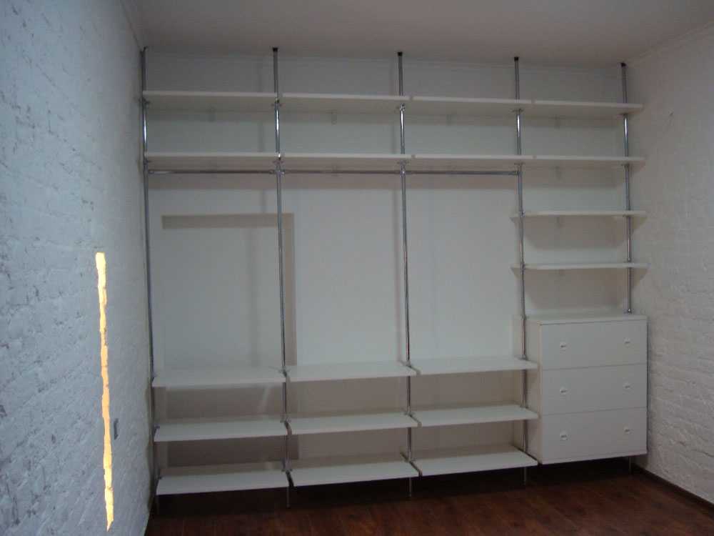 - материалом изготовления служит МДФ и ДВП, стоят такие гардеробные системы недорого, по сравнению с металлическими конструкциями;
