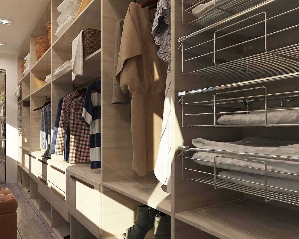 Гардероб может быть компактным и занимать минимальное количество площади или представлять собой просторную комнату для хранения всех необходимых вещей.