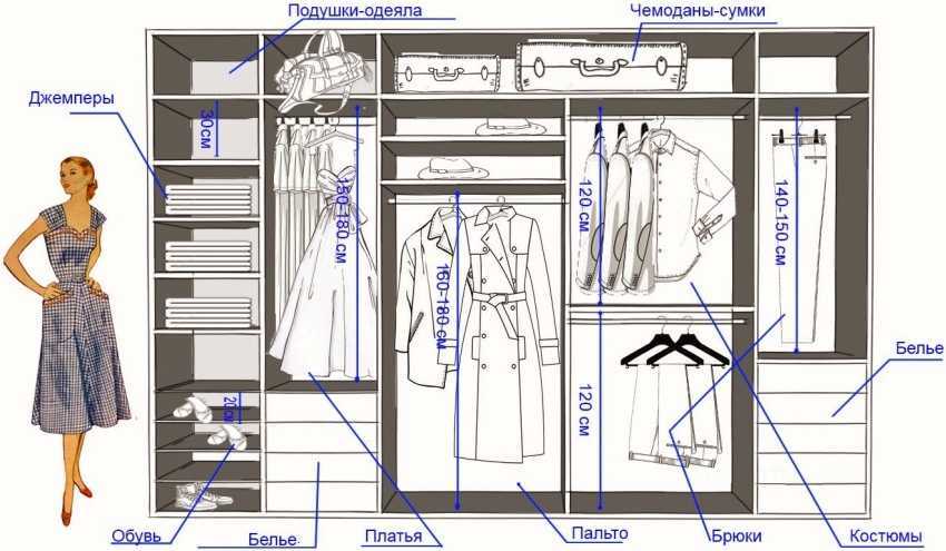 Гардеробная комната: планировка с размерами угловых конструкций