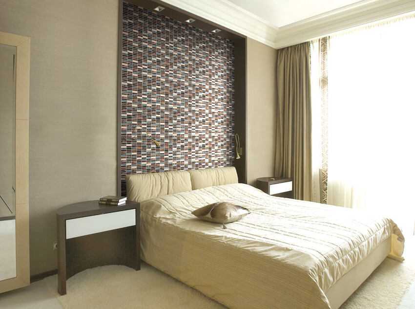 Скрыть недостатки помещения. С помощью комбинации можно визуально изменить пропорции спальни. Например, сделать комнату шире, больше и т.д.