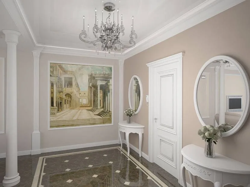 Прихожие, сделанные в классическом стиле, рекомендуется украсить картинами эпох:
