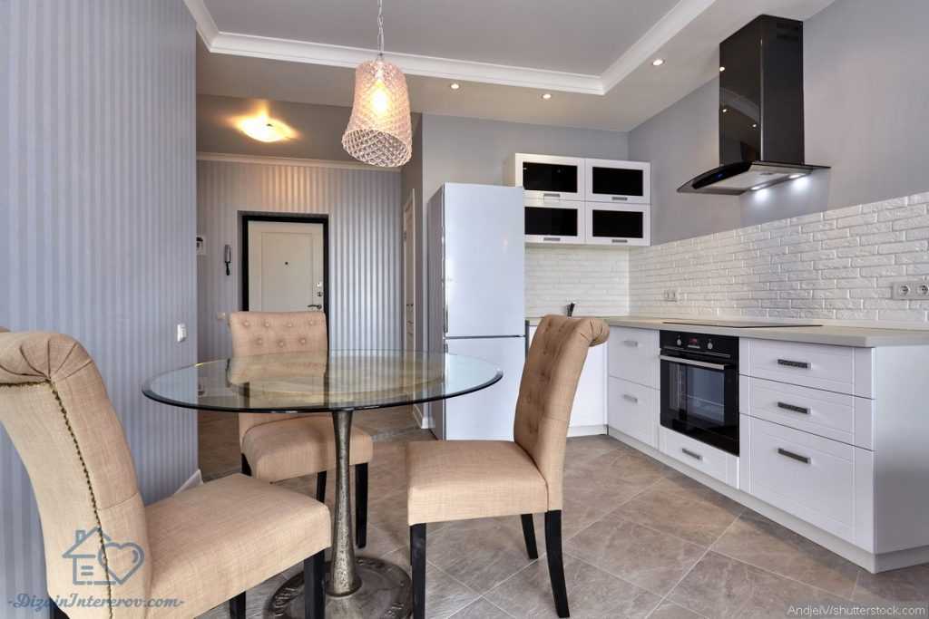 Чтобы сделать пространство визуально чуть шире, можно выбрать прозрачный стол из стекла или пластика. Он все равно будет занимать место, но при этом восприниматься кухня будет не такой крохотной и заставленной мебелью.