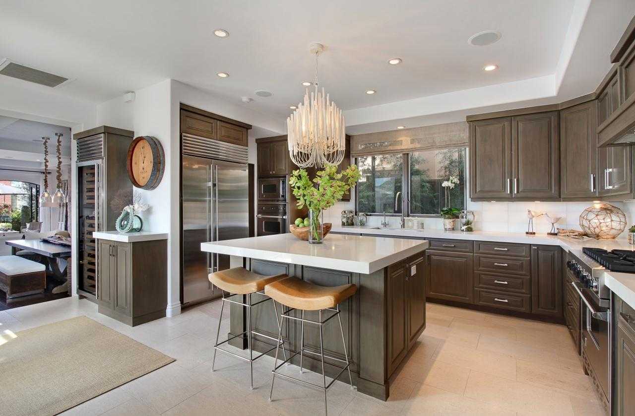 кухня с островом подходит для достаточно просторных помещений, площадь которых начинается от 18 м2. При Г- или П-образной общей планировке в центр пространства выносится отдельно стоящий остров, который служит рабочей поверхностью, и на котором может быть расположена варочная поверхность, а иногда и раковина. Остров станет удобным местом для готовки, ведь расположен равноудаленно от всех объектов;