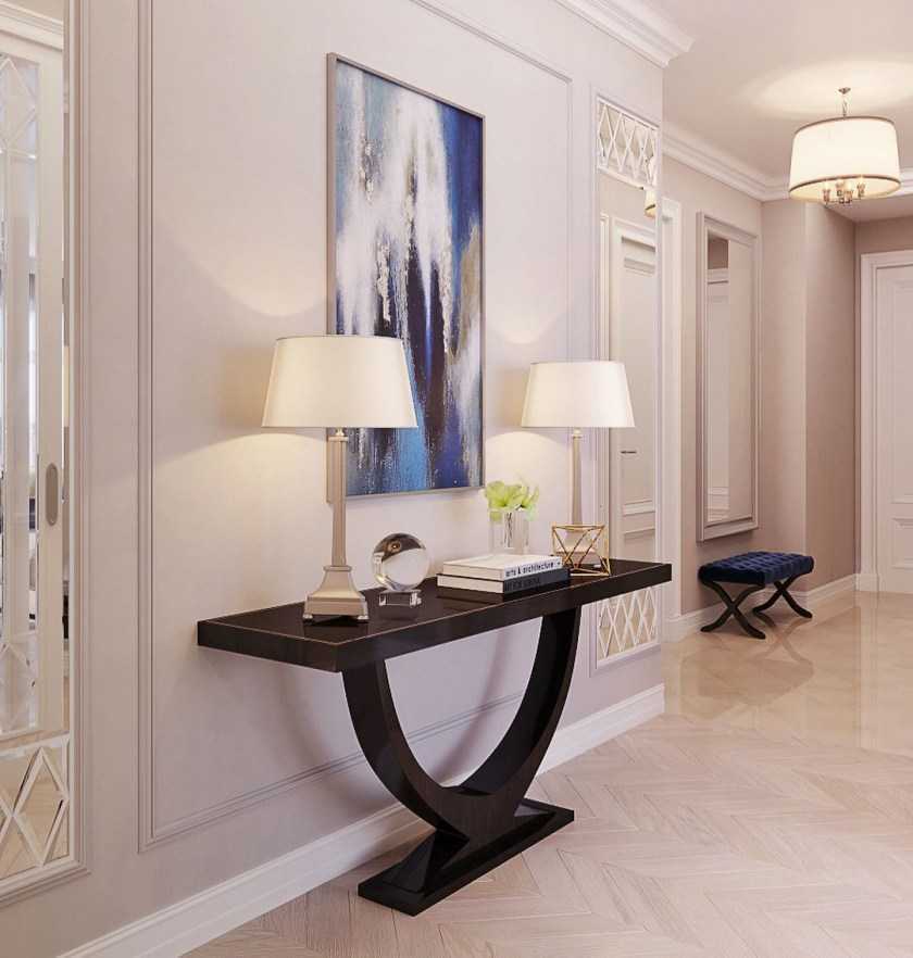 Столик с ящичками в стиле ар-деко в просторной прихожей