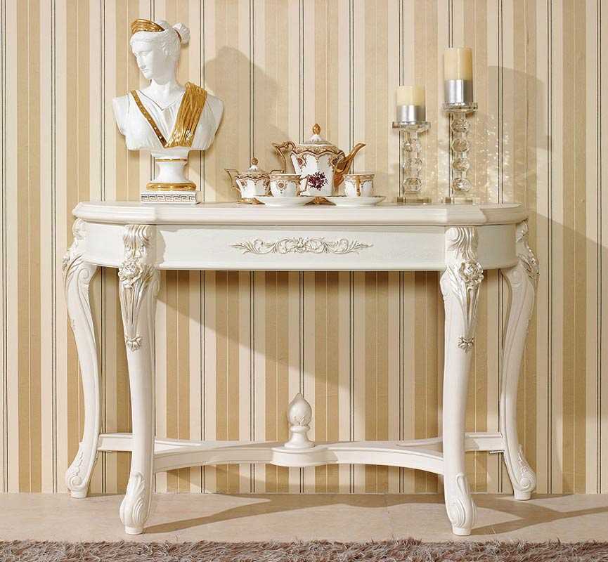 Поэтому классическая консоль выступает в роли пристенного столика. В первых моделях столешница прочно крепилась к перегородке, что позволяло применять для конструкции всего одну или две ножки. Со временем мебельный элемент приобрел полную самостоятельность.