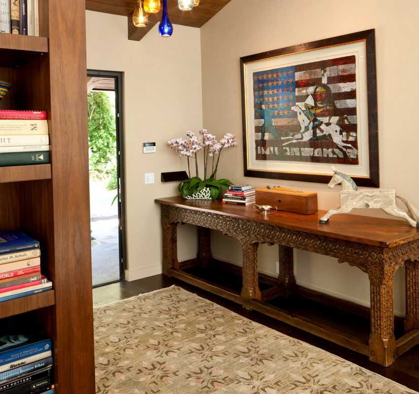Если площадь прихожей достаточная, то можно приобрести консоль побольше, и использовать ее как место под хранение книг. Но слишком много предметов ставить на консоль дизайнеры не рекомендуют, так как это будет создавать эффект захламленной прихожей.