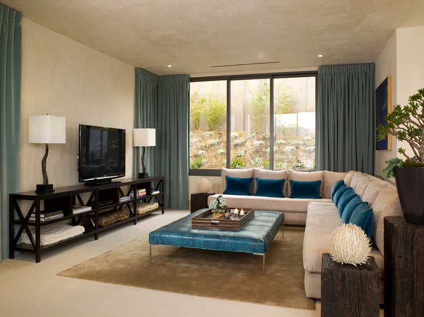 Оптимальным вариантом для гостиной являются плавающие консоли. Такие модели легко поддаются чистке, при желании их положение можно изменить, опустив конструкцию ниже или подняв ее.
