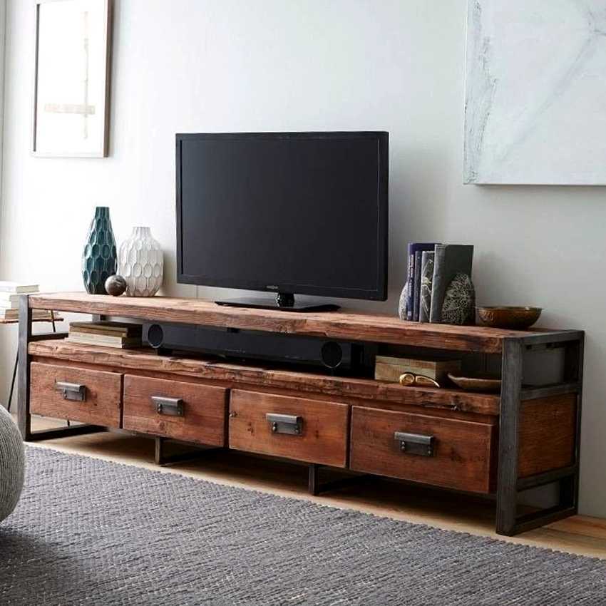 Если в гостиной, помимо телевизора, имеется другая техника, рекомендуется отдать предпочтение консолям с открытыми полками, куда можно установить видеомагнитофон, музыкальный центр, колонки и другую аппаратуру, а также мелкие предметы обихода. Для создания гостиной в эко-стиле подойдут изделия, изготовленные из натуральных материалов. Оригинально будут смотреться в интерьере конструкции в виде плетеных корзин.
