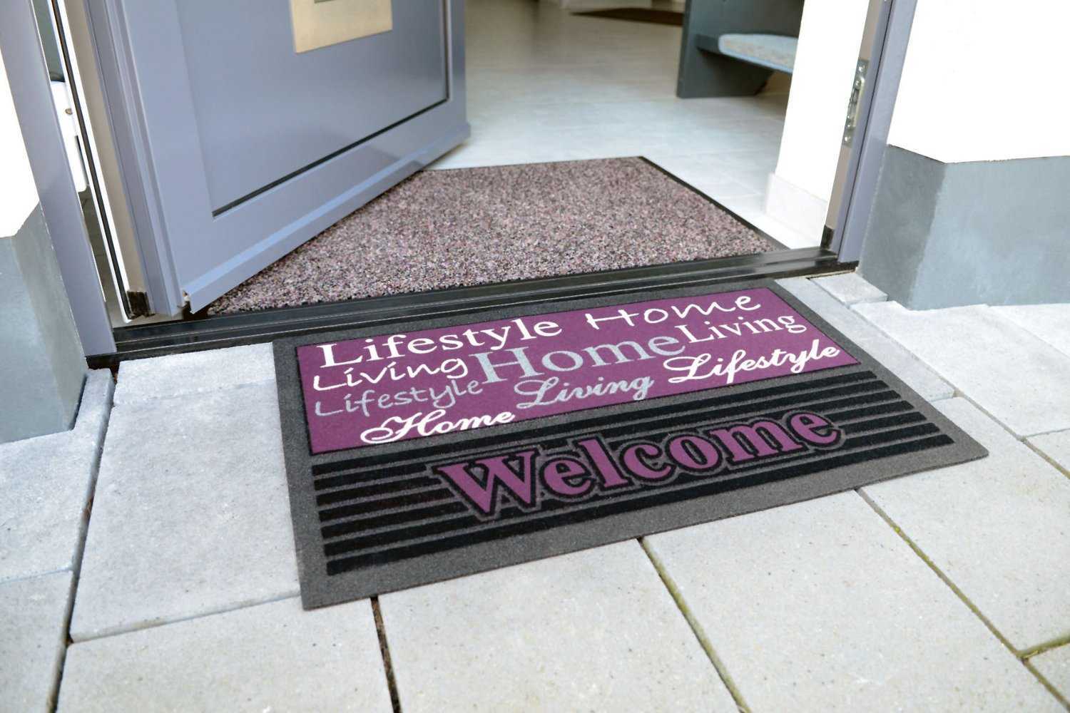 Кроме того, сейчас в продаже можно найти придверные коврики, которые способны стать главным украшением интерьера. Например, весьма популярны коврики с надписями. Помимо традиционных «Welcome» и «Home sweet home», производители часто украшают изделия веселыми словечками и выражениями, как нельзя лучше характеризующими настроение и чувство юмора хозяев. Кроме того, при желании коврик с необходимой надписью можно изготовить на заказ.