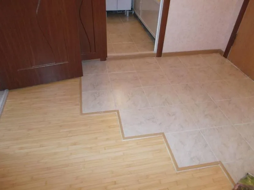 Материал цениться за его красоту, поскольку он хорошо имитирует любое натуральное сырье. А также за умеренную цену. Но если стык между напольной плиткой и ламинатом не задекорировать, то он будет бросаться в глаза и испортит весь вид комнаты. Поэтому необходимо грамотно оформить переход между разными материалами.