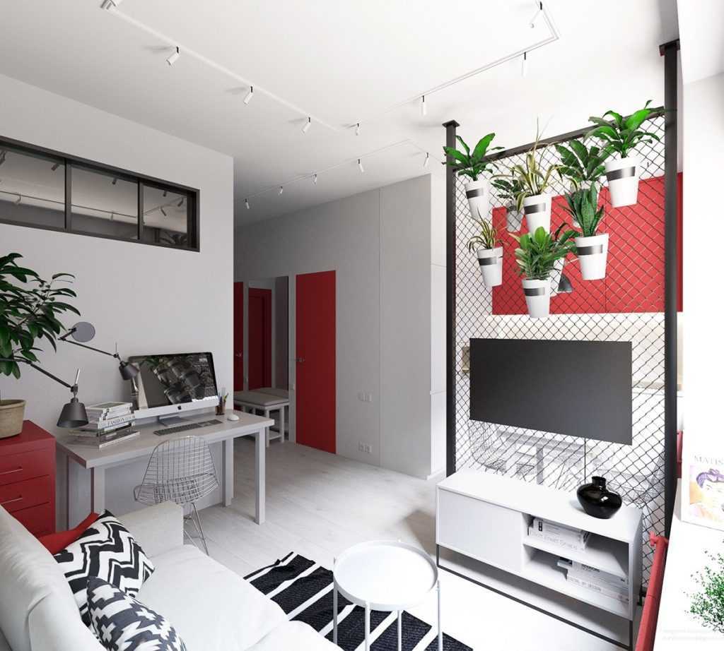 Красно-белый сочетает два самостоятельно сильных цвета, где один будет преобладать над другим, от чего восприятие интерьера будет меняться. Красный будет способствовать активности, а белый уравновешивать ее спокойствием.