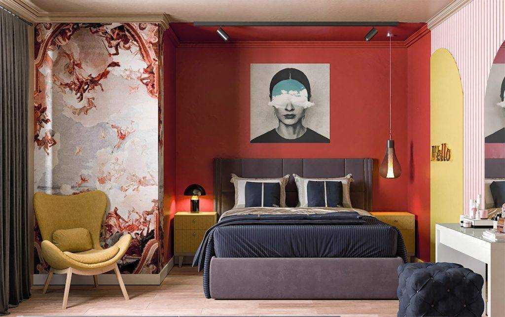 Для отделки спален рекомендуется использовать приглушенные оттенки красного, чтобы не вызывать дискомфорта.