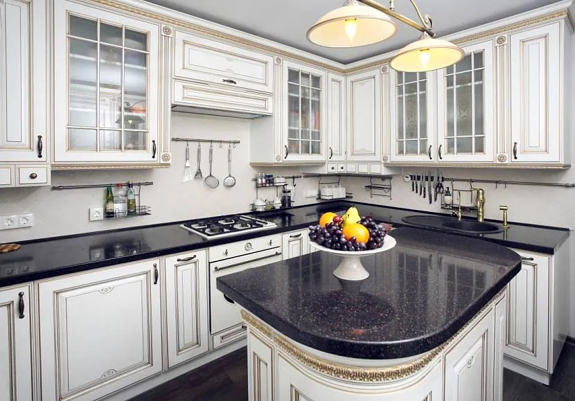 Для смягчения строгости белого цвета можно добавить ярких аксессуаров и столешницу из натурального дерева теплых оттенков.