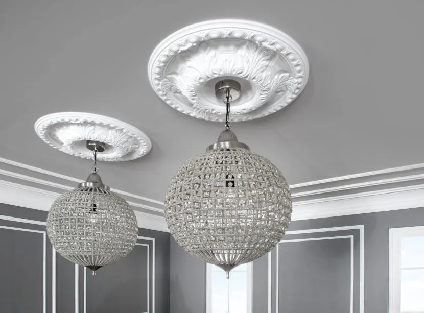 - Розетки. Оформить место под люстру – это отличная идея, которая освежит декор и придаст всему помещению атмосферу изысканности и красоты.