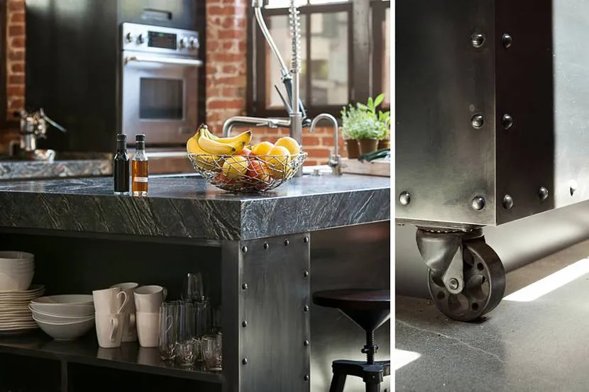 Большой функциональный остров на кухне в стиле лофтИсточник alliancemillwork.ca