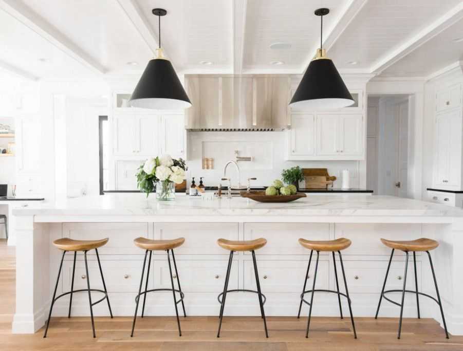 Маленький совет: разместите фигурную люстру непосредственно над кухонным островом. Она станет основным украшением, при этом обеспечивая достаточно света над рабочей поверхностью.