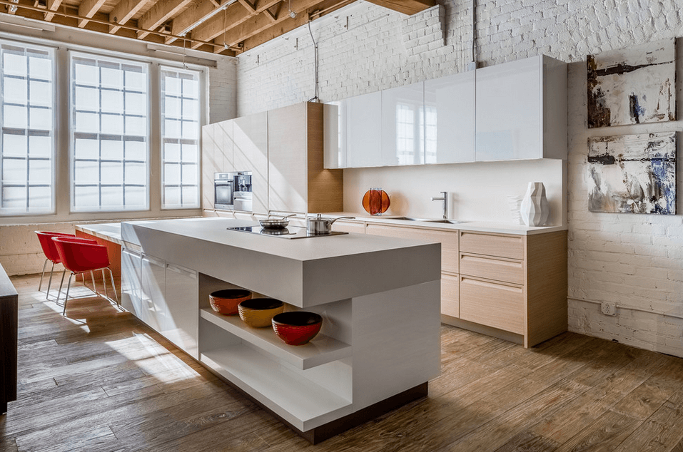 Для лофта островная планировка кухни – одно из самых удачных решений. При этом индустриальный стиль не требует такого четкого соблюдения пропорций, единства деталей, фактур и оттенков. Если тебе нравятся кухонные острова, как отдельные выразительные акценты – в лофте они будут как родные.