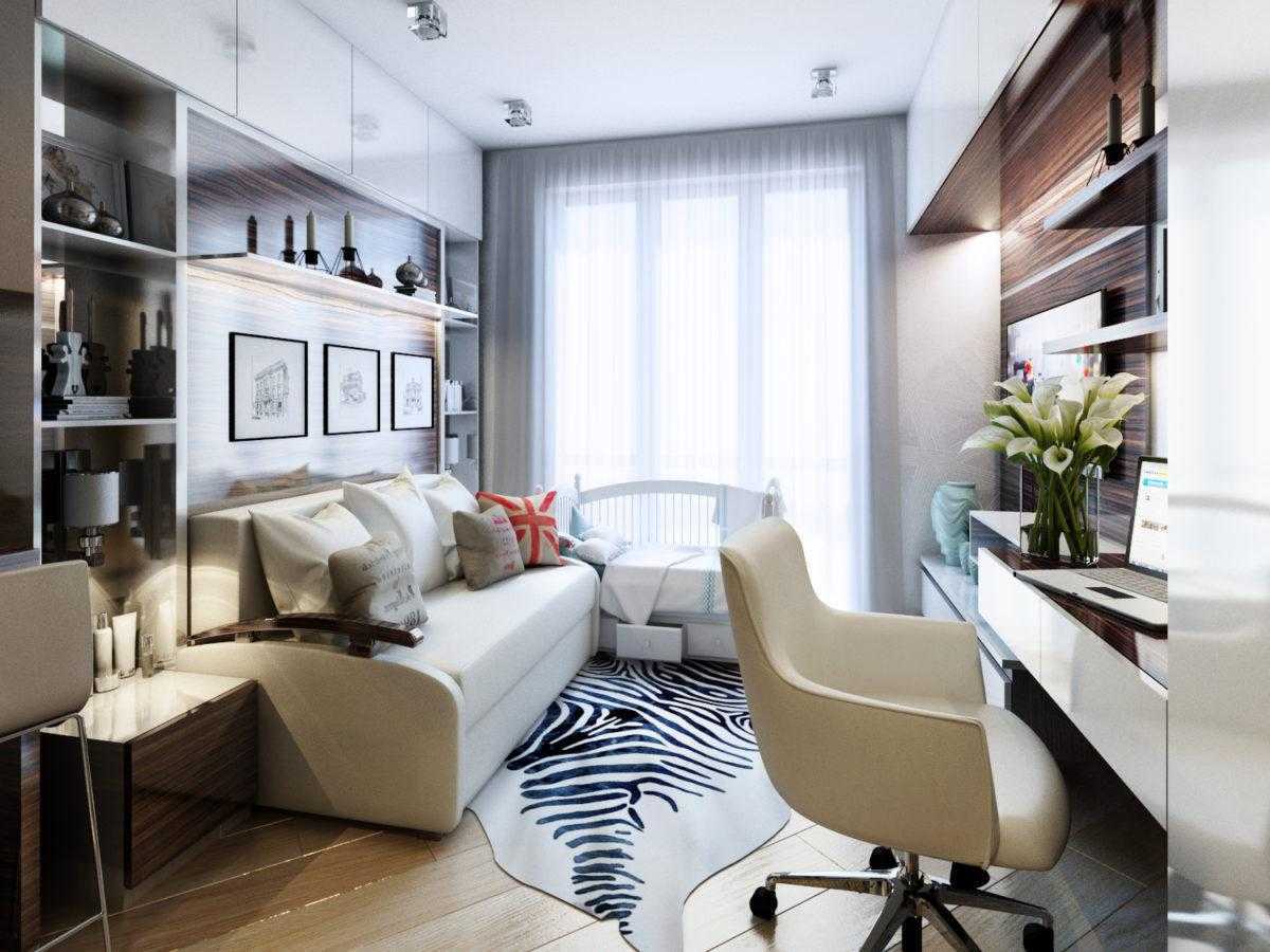 Если квартира с балконом, то появится дополнительная площадь, которую обязательно надо включить в дизайн-проект. Если позволяет конструкция дома и стену балкона можно снести, появится отличное место для дивана, стола или кровати. Если нет, то балкон можно утеплить и обустроить зону хранения, отдыха или рабочее место.