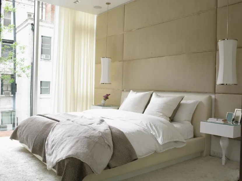 Изголовья классических кроватей обычно выполняются в том же цвете, что и обивка. Такой предмет мебели, по общему признанию, является «связным», но некоторым он покажется скучным — независимо от того, имеет он пастельный или контрастный цвет, например бирюзовый, индиго, темно-синий или фуксия. В такой ситуации можно выбрать мягкие панели над кроватью, которые будут интересным дополнением кровати, и в то же время выделятся из всего интерьера.