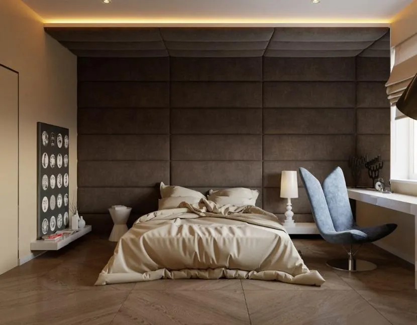В гостиной они отлично впишутся за телевизором. Благодаря этому комната потеряет ощущение пустоты и стерильности, которые часто гармонируют с футуристическим интерьером. В спальне их обычно используют для создания удобного изголовья или мягких стен для кровати.