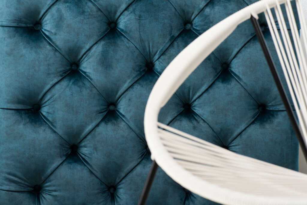 - Использование стиля капитоне. Стиль капитоне достаточно популярен в изготовлении мягкой мебели, называется ещё каретной обтяжкой. Особенность такого крепления в том, что ткань и наполнитель фиксируется к стене фигурными гвоздями или пуговицами. Каркас использовать не обязательно. Лучше сформировать конструкцию с листов ДСП или фанеры. На листе делаются отверстия под пуговицы или гвозди. Здесь можно проявить фантазию и сделать отверстия разным рисунком. Сначала закрепляется ткань с обратной стороны, потом раскладывается поролон и закрепляется полностью конструкция. останется только прижать пуговицы.
