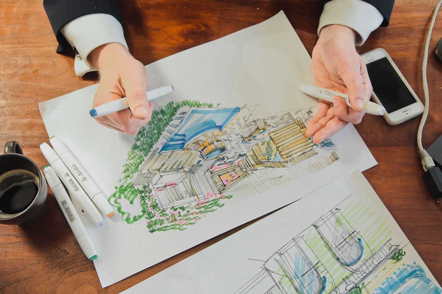 - Дизайнерский. По желанию заказчика разрабатывается интерьерный дизайн (стилевое решение, выбор мебели). Ландшафтный дизайн может включать озеленение и проектирование малых архитектурных форм (например, беседки, альпийской горки, декоративного пруда). Отдельно разрабатывается наружное освещение.