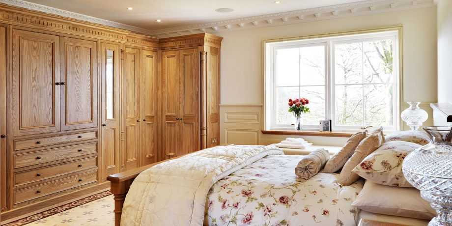 Внимание! Яркие цвета в спальне с гардеробной в стиле кантри неуместны