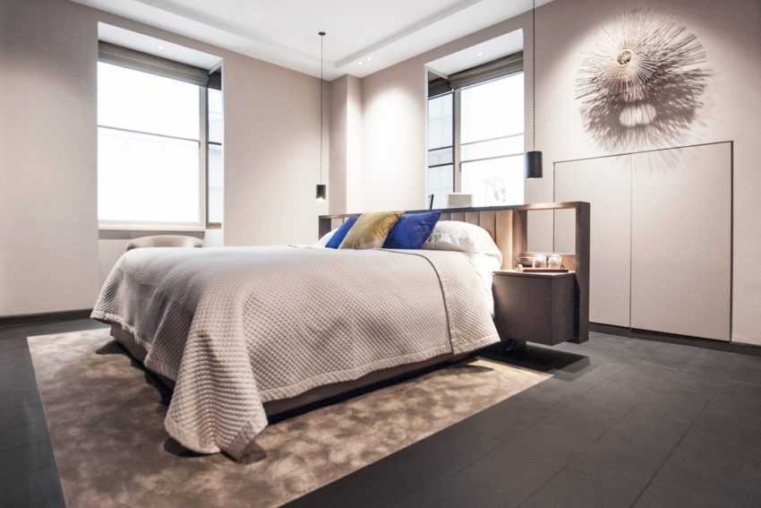 Простор мастер-спальни позволяет выбирать разные стили для оформления ее функциональных областей