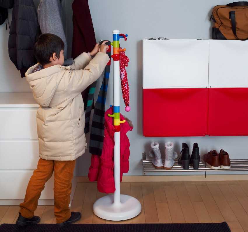 – большое количество крючков на разных уровнях дает возможность размещения одежды и аксессуаров для детей;