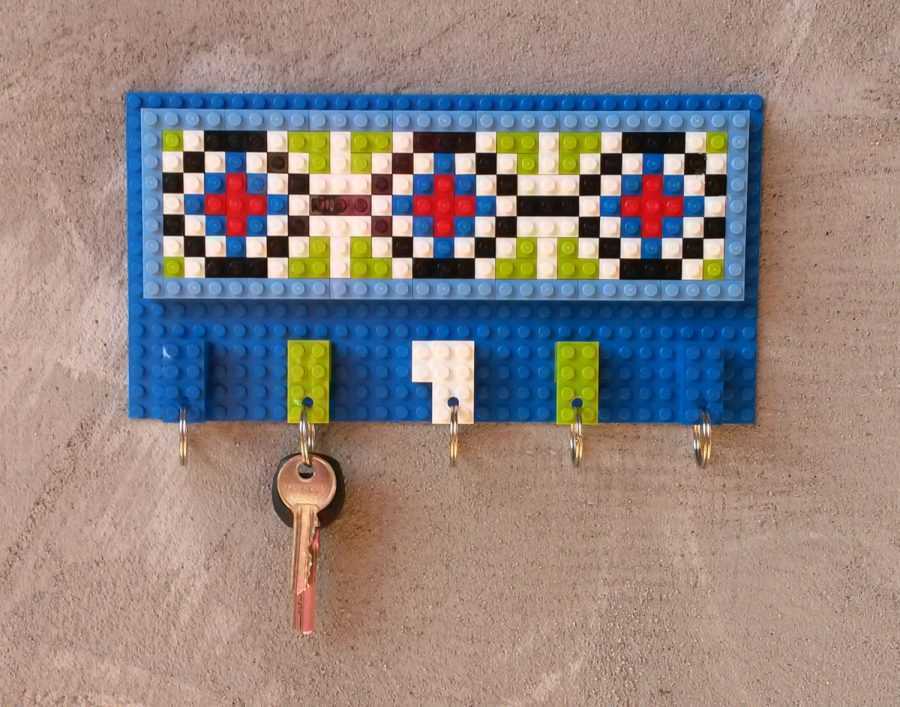 Придя домой, вы просто прикрепляете деталь конструктора к доске. А свободное место можно использовать для создания мозаик или надписей. Так вы можете менять дизайн ключницы так часто, как только захотите.