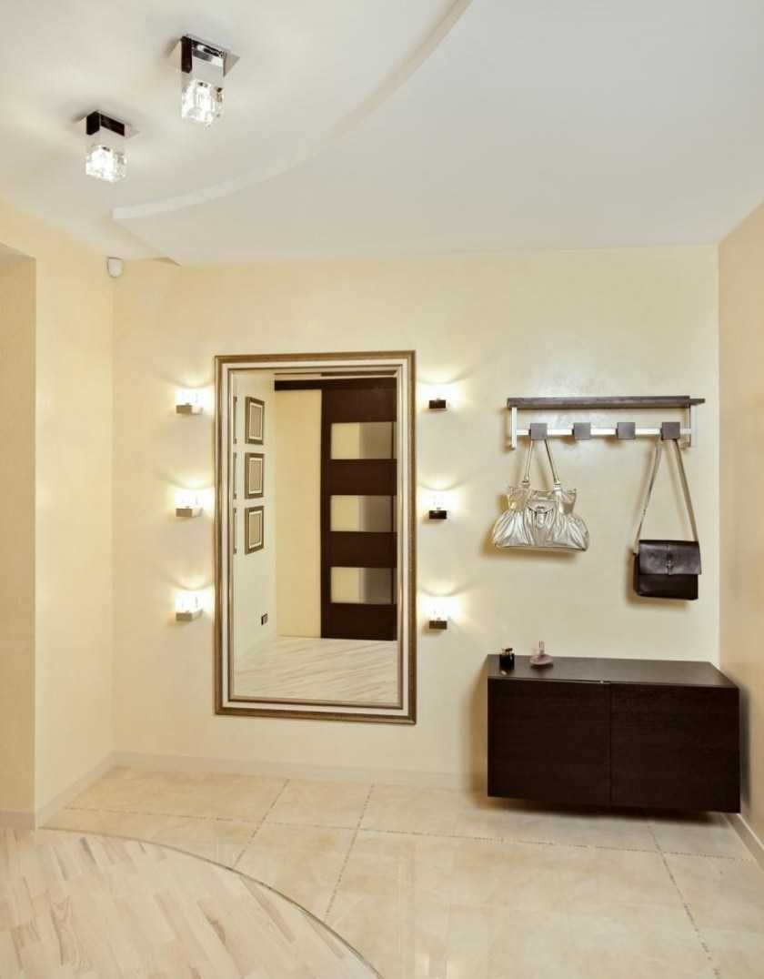 Не стоит применять для холла люминесцентные лампы, которые могут искажать передачу цвета. Галогеновые лапы напоминают естественное освещение. Стильно смотрятся натяжные потолки с точечными светильниками, которые зрительно приподнимают потолок.