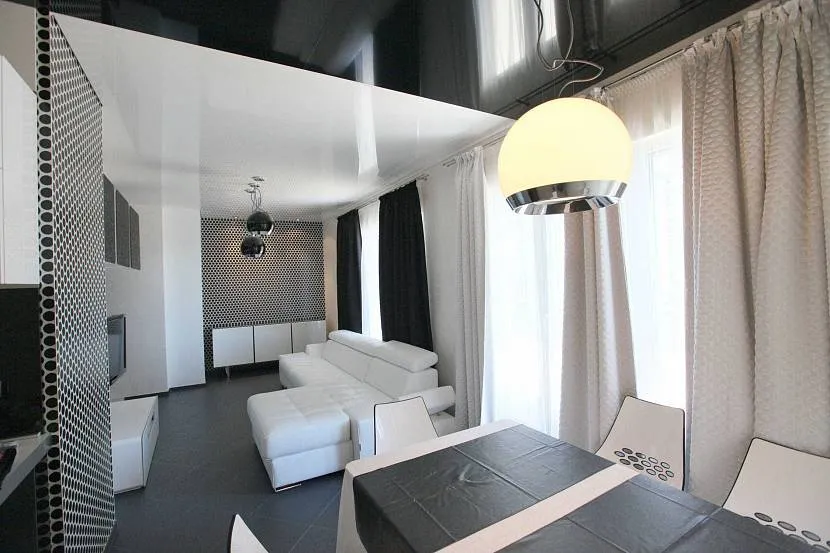 Черный глянец или матовое полотно безупречно дополнит хай-тек, лофт, современный или даже неоклассику. А черные элементы многоуровневых потолков создают яркую игру контрастов, которая способна в корне преобразить любое помещение.