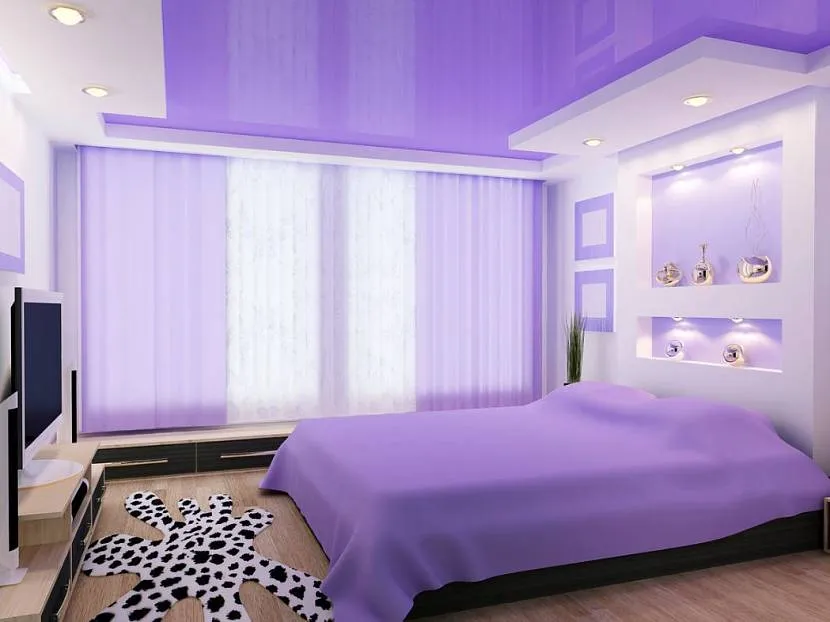 Натяжной потолок спальни фиолетового цветаИсточник gold-potolki.ru