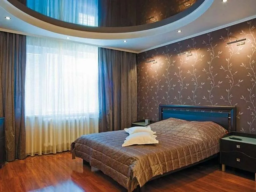 Любителей креативных интерьеров порадуют необычные фигурные потолки в спальне. Например, можно сделать короб в форме сердца или символического цветка, или просто сгладить резкость геометрии комнаты округлыми линиями.