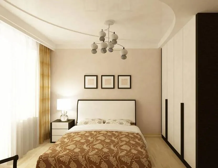 Для маленькой спальни покрась потолок светлой глянцевой краской – молочной или бежевой. Если любишь более холодные интерьеры, снова подойдет серые, а если более романтичные – выбери бледный пастельный оттенок.