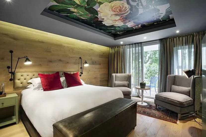 Красивые цветы на потолке спальной комнатыИсточник rehouz.info