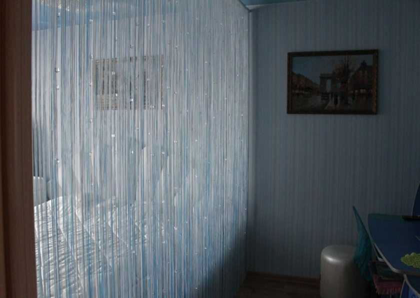 - при помощи нитей можно создать дизайн как для окна, так и для межкомнатного пространства, используя редкие висюльки или нестандартный материал.
