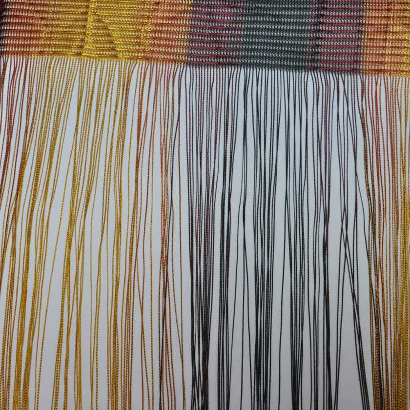 Если вы хотите создать эффект градиента, то старайтесь не оставлять промежутков между нитями, чтобы сохранить плавность перехода. Если же для вас важна воздухопроницаемость, то делайте больше свободного пространства. Как только изделие завершено, можно повесить шторы на деревянный карниз и тщательно расправить, чтобы избежать спутывания. В качестве дополнительных элементов используйте небольшие пуговички, стеклярусы, разноцветные бусины или кусочки ткани, кожи или меха.