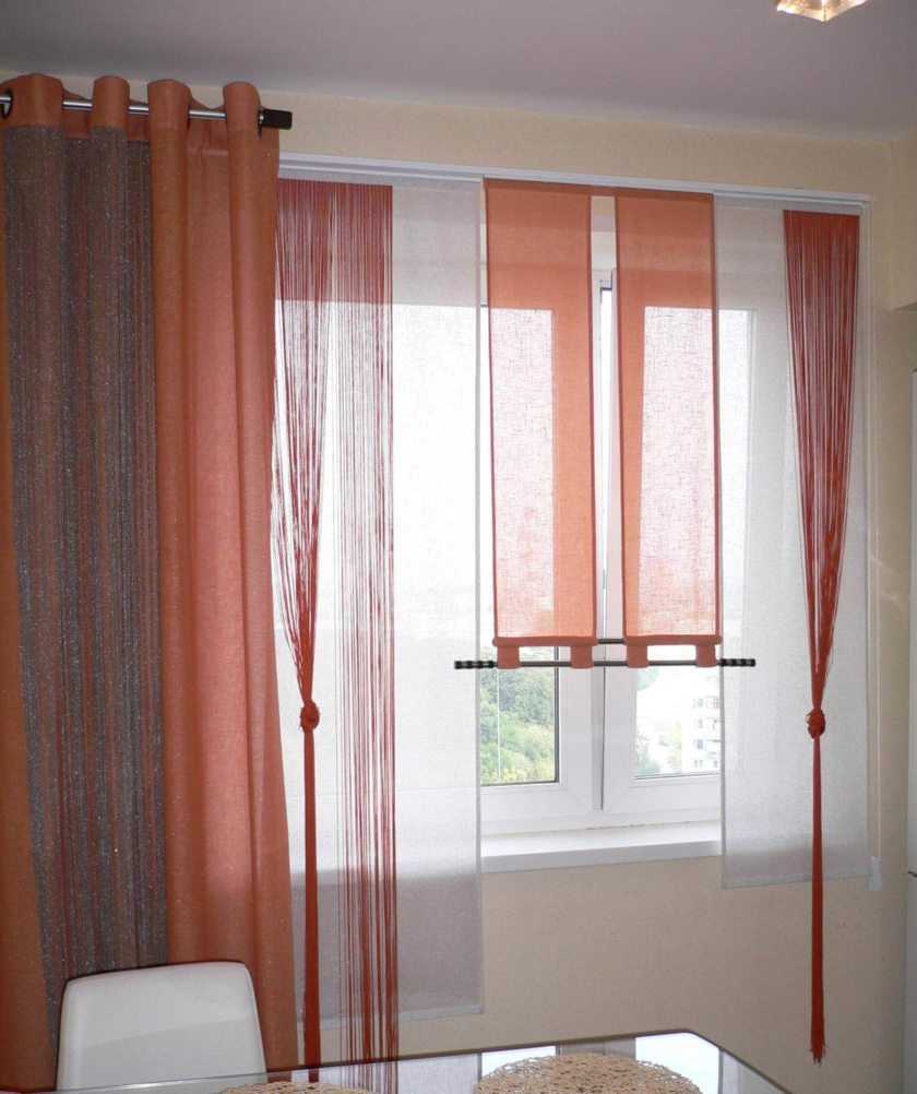 В сочетании же с другими типами занавесей, нитяные шторы дают огромные возможности для творчества при воплощении самых смелых замыслов.