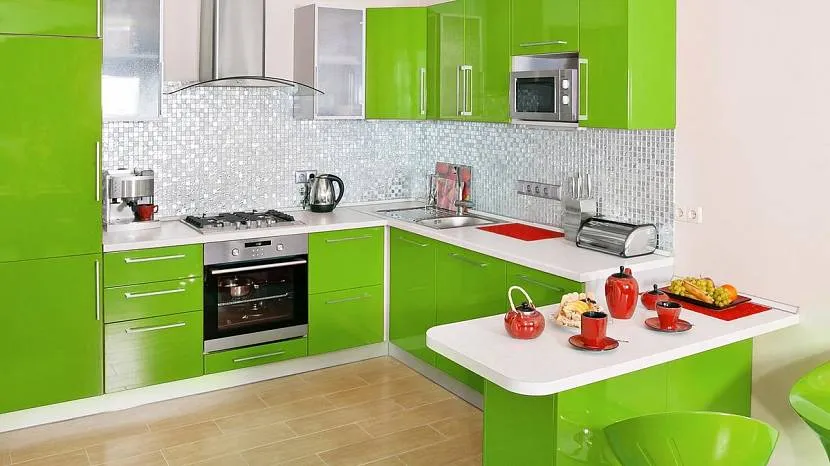 Бело-зеленый. Зелено-белая кухня используется во всех стилевых направлениях.